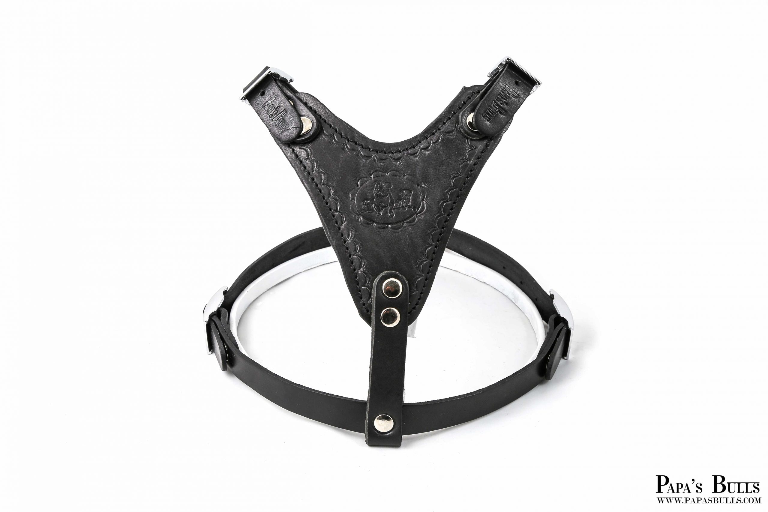 The “Karachi” Harness is an accessory made from superior leather. It’s an ideal wear for small and large dogs. It’s padded with soft felt from the inside and hand stamped with patterns of chrome finished buckles. This tool will be of great service to you and your dog. This model is very popular with our fashion minded customers. It is also practical for dog walking and working. This harness features easy adjustable straps and light weight leather.