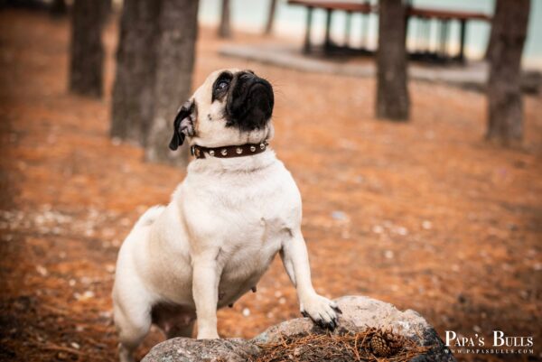 Go on stroll on with you gentleman canine as your pet shows off its spiked collar! This collar makes your dog look strict and stylish at the same time. The collar is made from luxurious leather which makes your dog look elegant. The spikes are rust-proof and securely riveted. The leather is made of good quality which prevents irritations